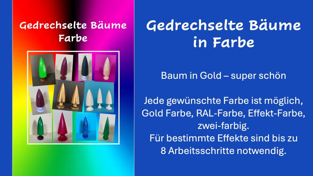 Es gibt sehr viele Möglichkeiten einen gedrechselten Baum farbig zu gestalten.