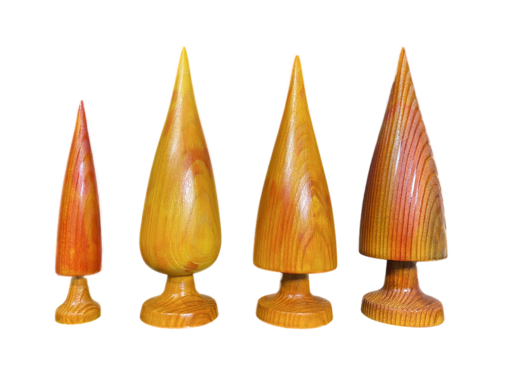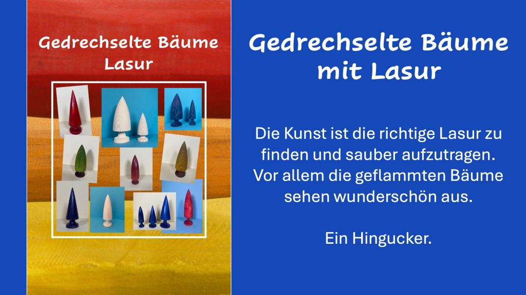 und nun einige Beispiele für die Gestaltung gedrechselter Bäume mit Lasuren in verschieden Auftragstechniken