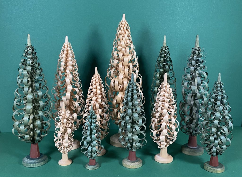 In meiner Werkstatt werden Spanbäume und gedrechselte Bäume gefertigt.